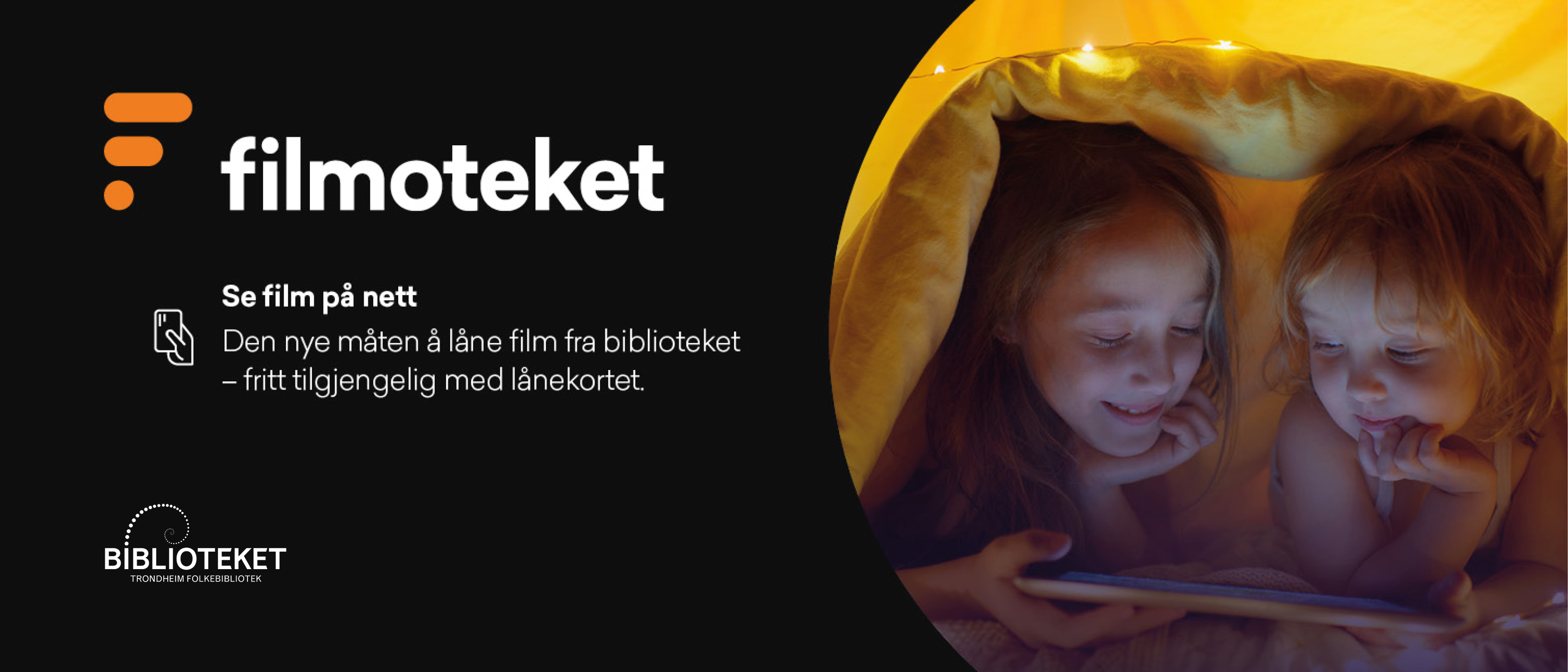 Med lånekort fra oss har du tilgang til strømmetjenesten Filmoteket! Lag deg en profil med ditt nasjonale lånekort og velg ditt hjemmebibliotek, for eksempel Trondheim hovedbiblioteket eller Trondheim Byåsen. Deretter får du tilgang til norske og internasjonale prisvinnende filmer for voksne og barn - helt gratis!