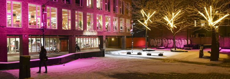 Da Trondheim folkebibliotek endelig fikk nytt bygg i 1988, ble det samtidig etablert en ny adresse. Den nye plassen, inneslutta mellom biblioteket og et nybygg mot Kjøpmannsgata, måtte ha et navn. Det var biblioteket som foreslo navnet Peter Egges plass, for å hedre en av byens mest kjente forfattere.